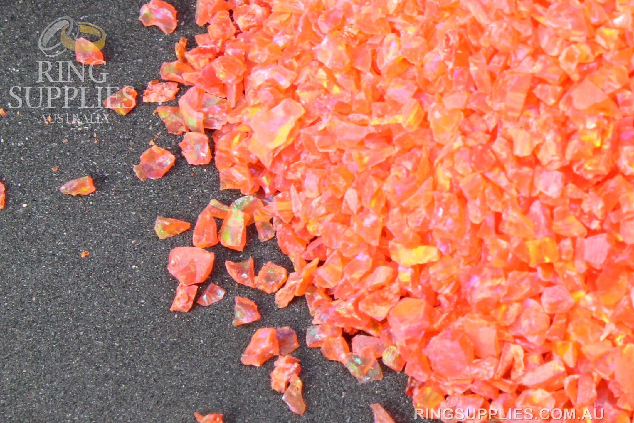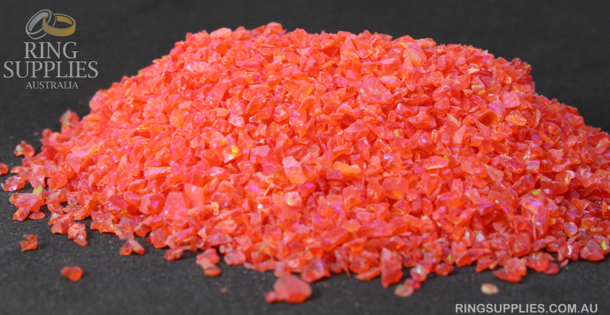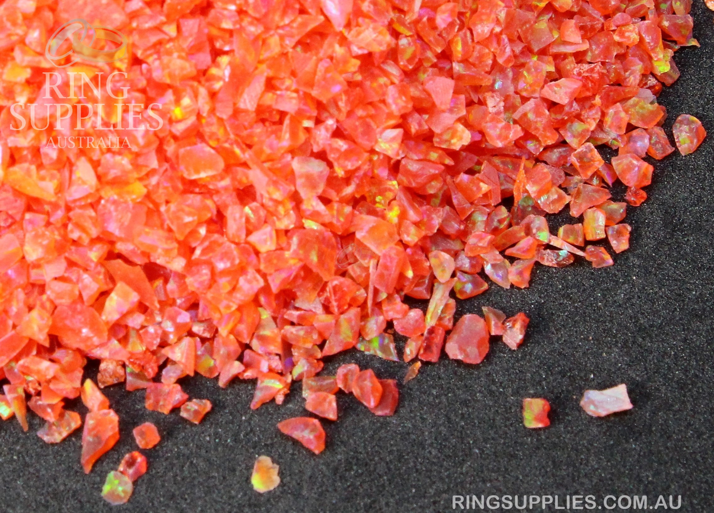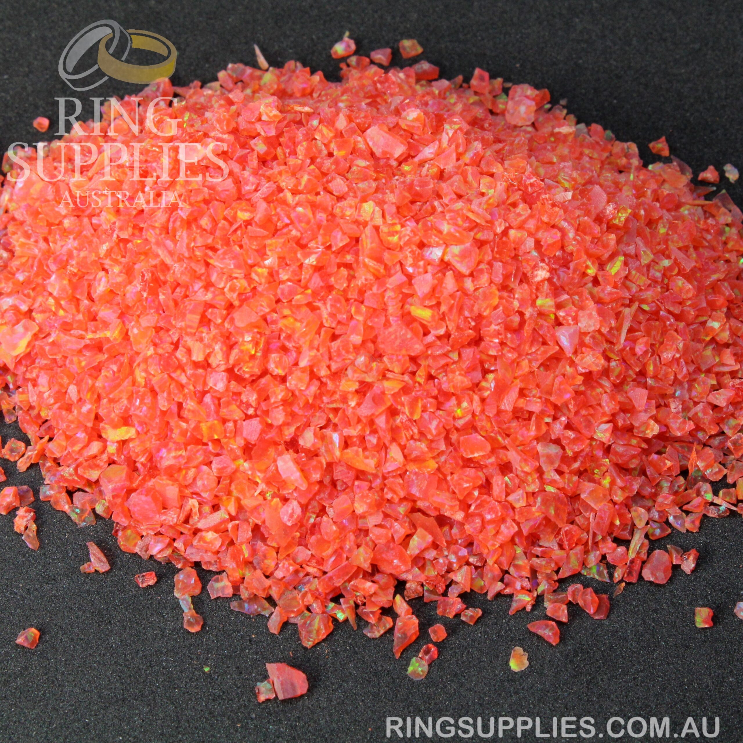 Crushed opal is sold in several chip sizes and colours. We have over 50 colours to choose from.